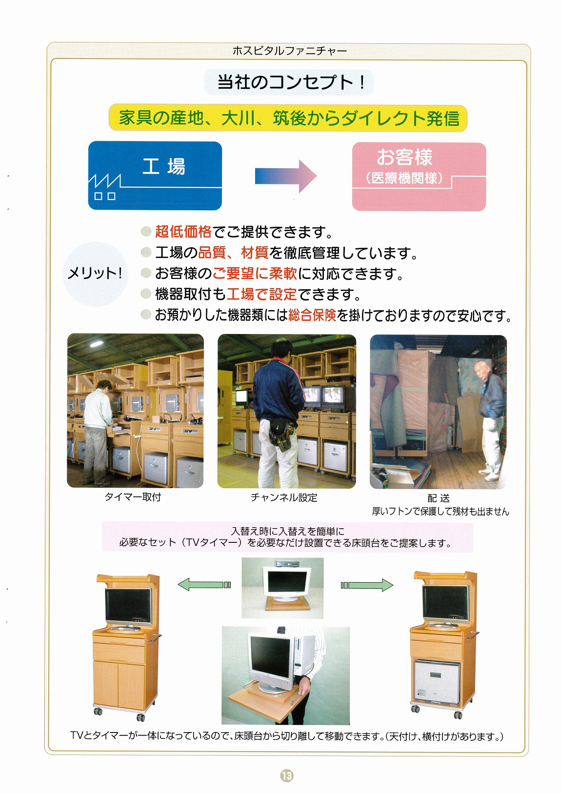 お客様のご要望やイメージを丁寧にお聞きし、医療従事者ならではの気づきや患者様の動線を考慮した設計・製作を行います。オーダーメイドの現場製作だからこそ、細部にまでこだわった対応が可能です。さらに、最新の技術と高品質な素材を使用し、長期的な信頼性と快適性を提供します。そのためカタログは重要視しておりません。イラストで確認しながらなので、スムーズなお打ち合わせができ、ご希望通りの床頭台をご注文いただけます。お見積もり、イラスト作成のご依頼はお気軽にどうぞ。しかし、全くイメージがわかない方がいらっしゃったため、残しております。